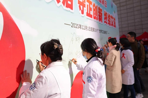 今年的宣传主题为“社会共治,守正创新,终结艾滋”(英文主题为“Overcoming disruption, transforming the AIDS response”),旨在深刻认识艾滋病防治工作的重要性和长期性,在总结、继承既往有效防治工作经验和典型做法的基础上,进一步倡导社会各界共同承担艾滋病防治责任,加强艾滋病防治措施的探索创新,推进艾滋病防治工作高质量发展。活动现场设置了多个宣传展区,通过专家义诊、健康咨询、宣传展板、互动问答、资料发放等多种形式,向市民普及艾滋病传播途径、预防措施、检测治疗等核心知识。医务人员和志愿者耐心解答市民疑问,倡导科学防治理念,推动艾滋病防治知识深入人心。 互动普及,增强防艾意识 为增强活动的参与性和实效性,现场开展了形式多样的互动环节。医务人员现场演示计生用品的正确使用方法,讲解艾滋病自我检测试剂的应用,并引导公众了解国家免费检测和治疗政策。志愿者们通过发放宣传手册、红丝带纪念品,组织有奖知识竞答等方式,吸引众多市民驻足参与。现场气氛热烈,不少市民表示,通过活动加深了对艾滋病的了解,消除了以往的认识误区,增强了自我防护意识。 共筑未来,迈向“零艾滋”愿景 活动的尾声,全体参与人员共同在签名墙上郑重署名,并亲手贴上象征关怀与希望的爱心红丝带,以此向社会发出深切呼吁:社会共治,守正创新,终结艾滋,为实现“零艾滋”的愿景携手同行、共同努力。大家纷纷表示,将持续支持艾滋病防治事业,积极传递温暖与力量,共同建设一个更加健康、包容、和谐的社会环境。 本次公益宣传义诊活动不仅提升了市民对艾滋病的认知水平和防范能力,也进一步强化了医疗机构、疾控部门与社会组织之间的协作机制。主办方表示,未来将持续开展形式多样的健康宣传与公益活动,推动艾滋病防治工作不断深化,为建设健康安徽、健康中国贡献力量。(艾滋病诊疗中心 张千/文 党办 舒文慧/图 戚应杰/审核)