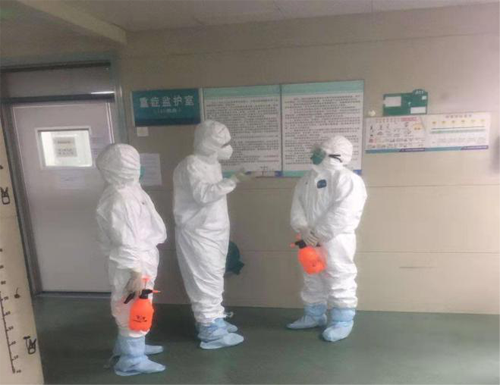 清洁区换好防护服,准备迎接挑战,我们有必胜的信心