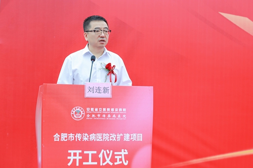 刘连新书记在致辞中希望医院以改扩建项目建设为契机,加强学科建设、人才培养和科研创新,争创三级甲等专科医院,建设成为技术一流、管理卓越、服务优质的区域传染病防治典范。