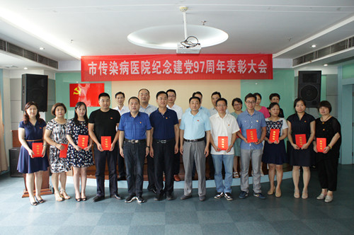 6月29日下午三点,感染病院区在门诊部三楼会议室召开纪念建党97周年表彰大会。院长张良明、副院长郑家华、副院长陶庆民出席大会,全体党员及组织人事科参加大会,大会由郑家华副院长主持。